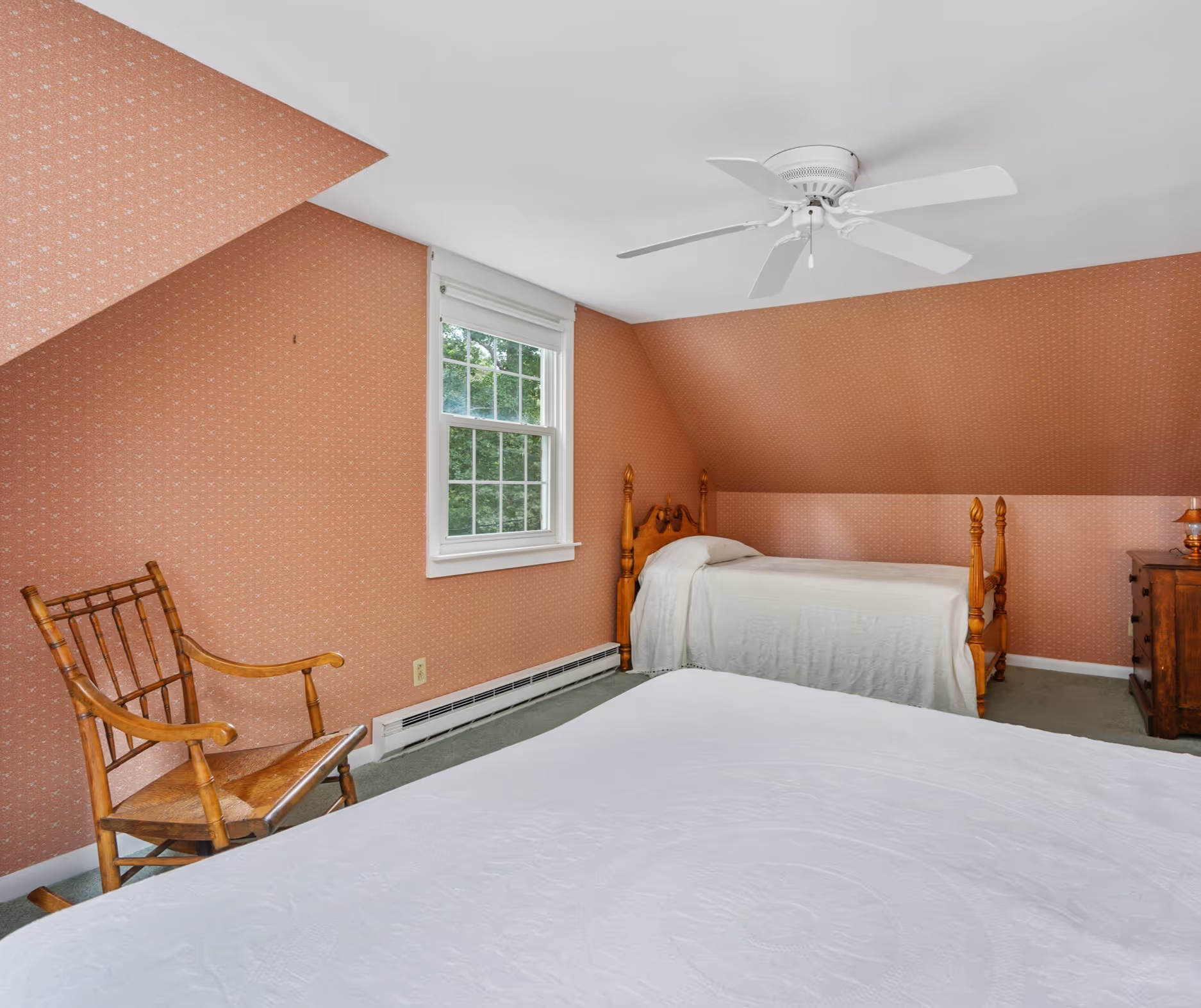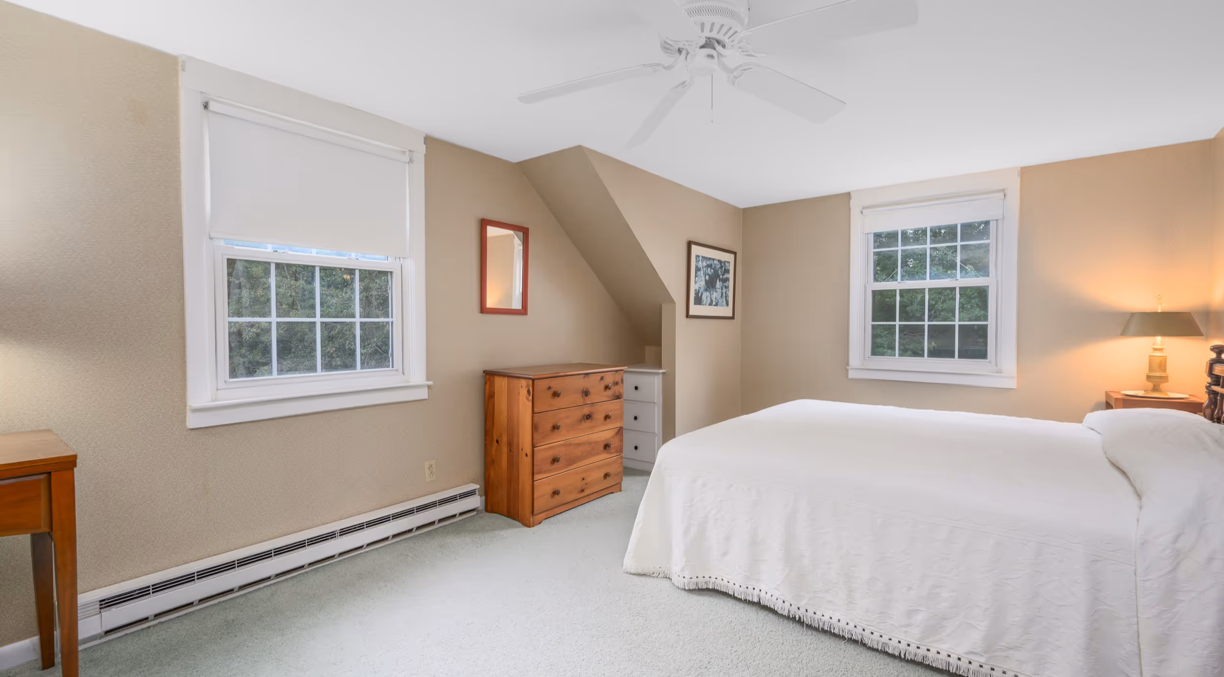 Tucked at the end of the hall, the primary bedroom offers privacy, soft light, and an ensuite bath. It’s simple, serene, and set apart just enough to feel like a personal retreat, even when the house is full.